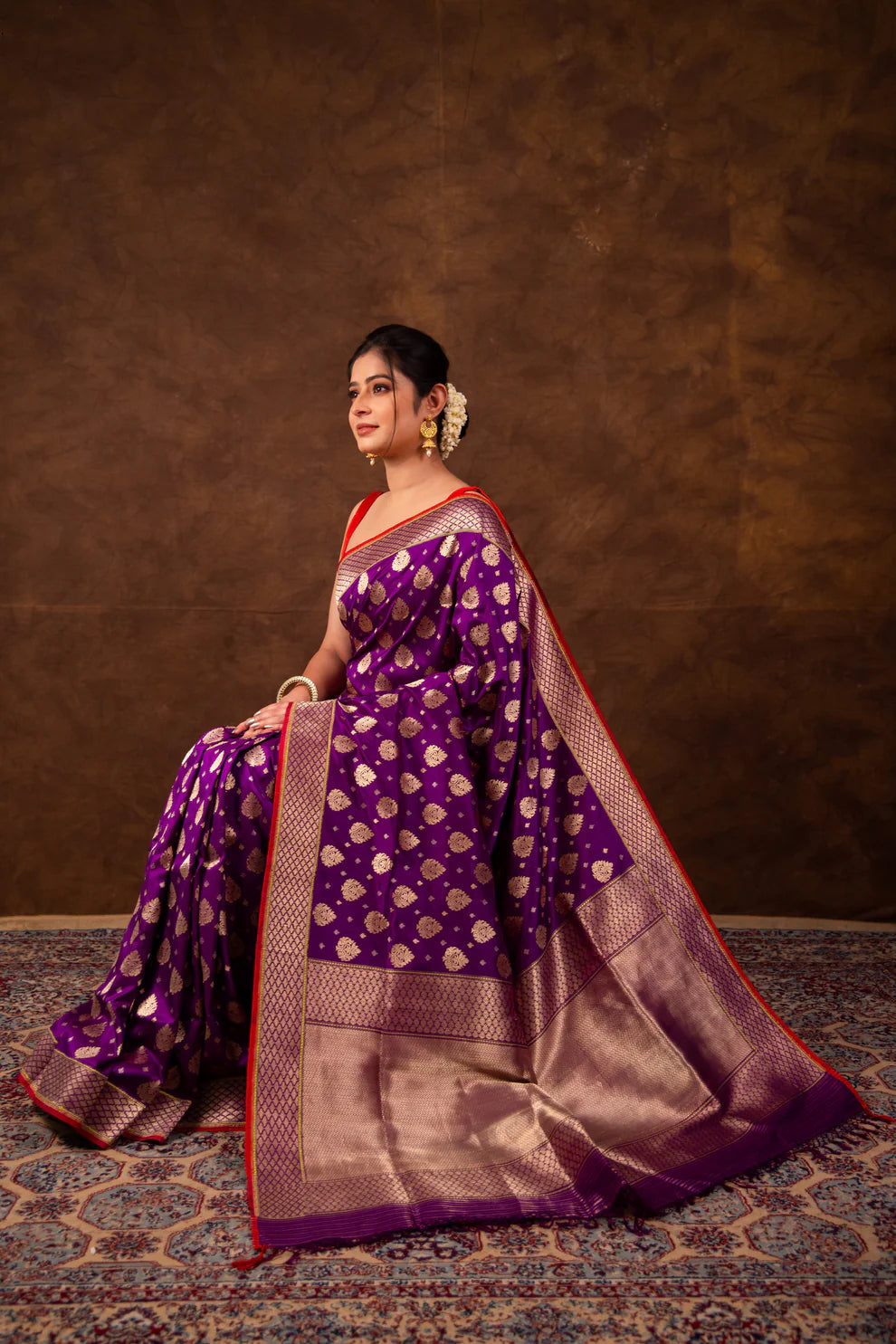 Banarasi Hiran Soft Silk Saree Dark Purple