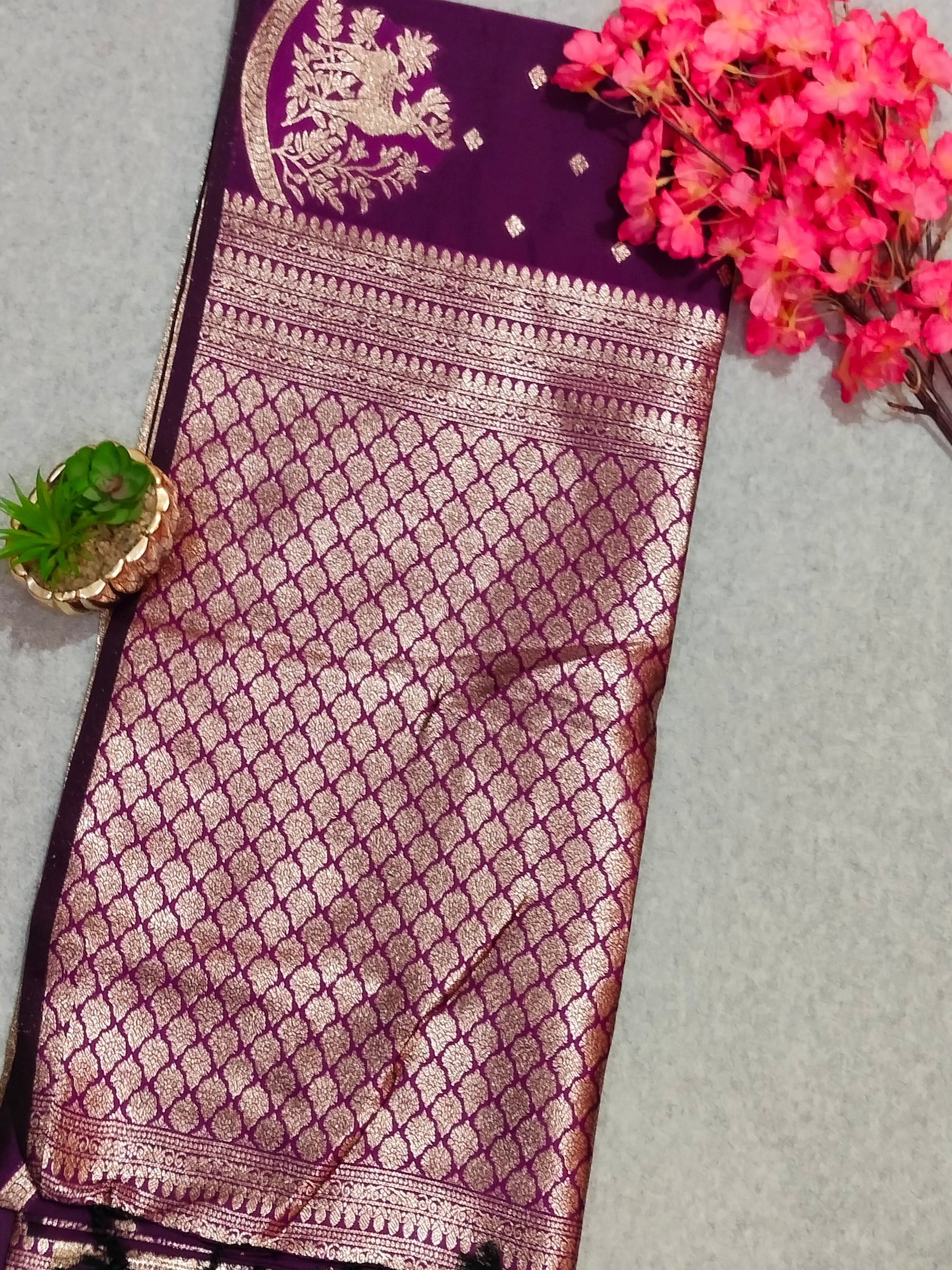 Banarasi Hiran Soft Silk Saree Dark Purple