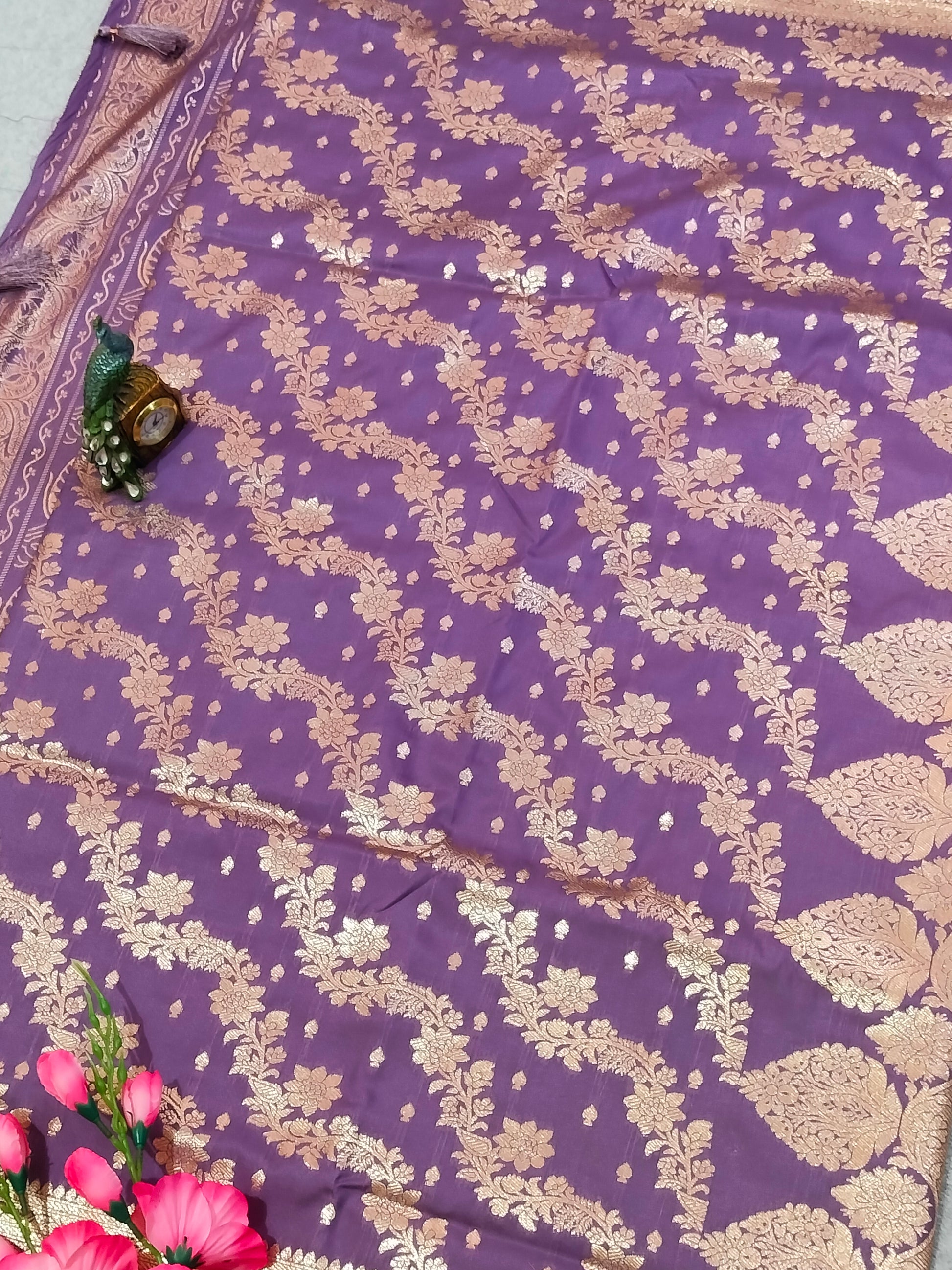 Elevate your traditional wardrobe with this Banarasi Soft Silk Saree in a rich purple hue. Crafted from fine soft silk, it offers a smooth texture and graceful drape, ideal for formal occasions and cultural ceremonies. The intricate Banarasi weaving technique highlights its luxurious feel, blending heritage craftsmanship with contemporary elegance. This saree promises both comfort and timeless style.