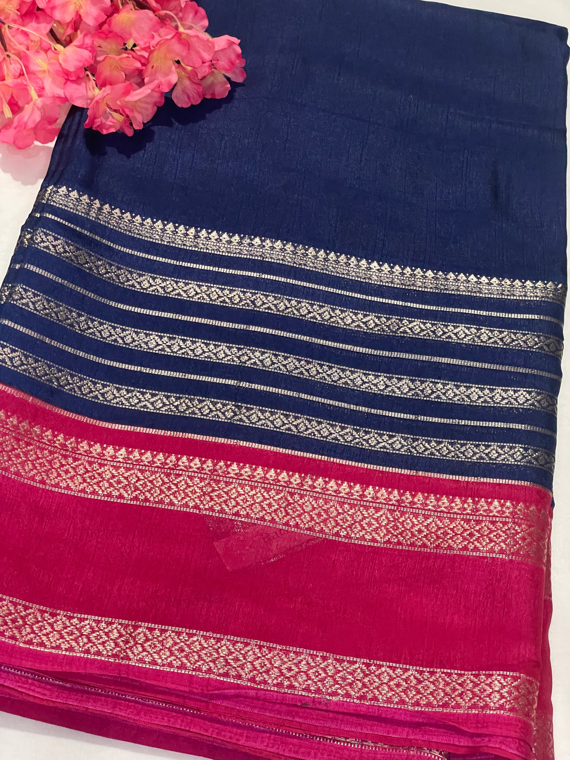 Blue & Pink Combination Crape Saree