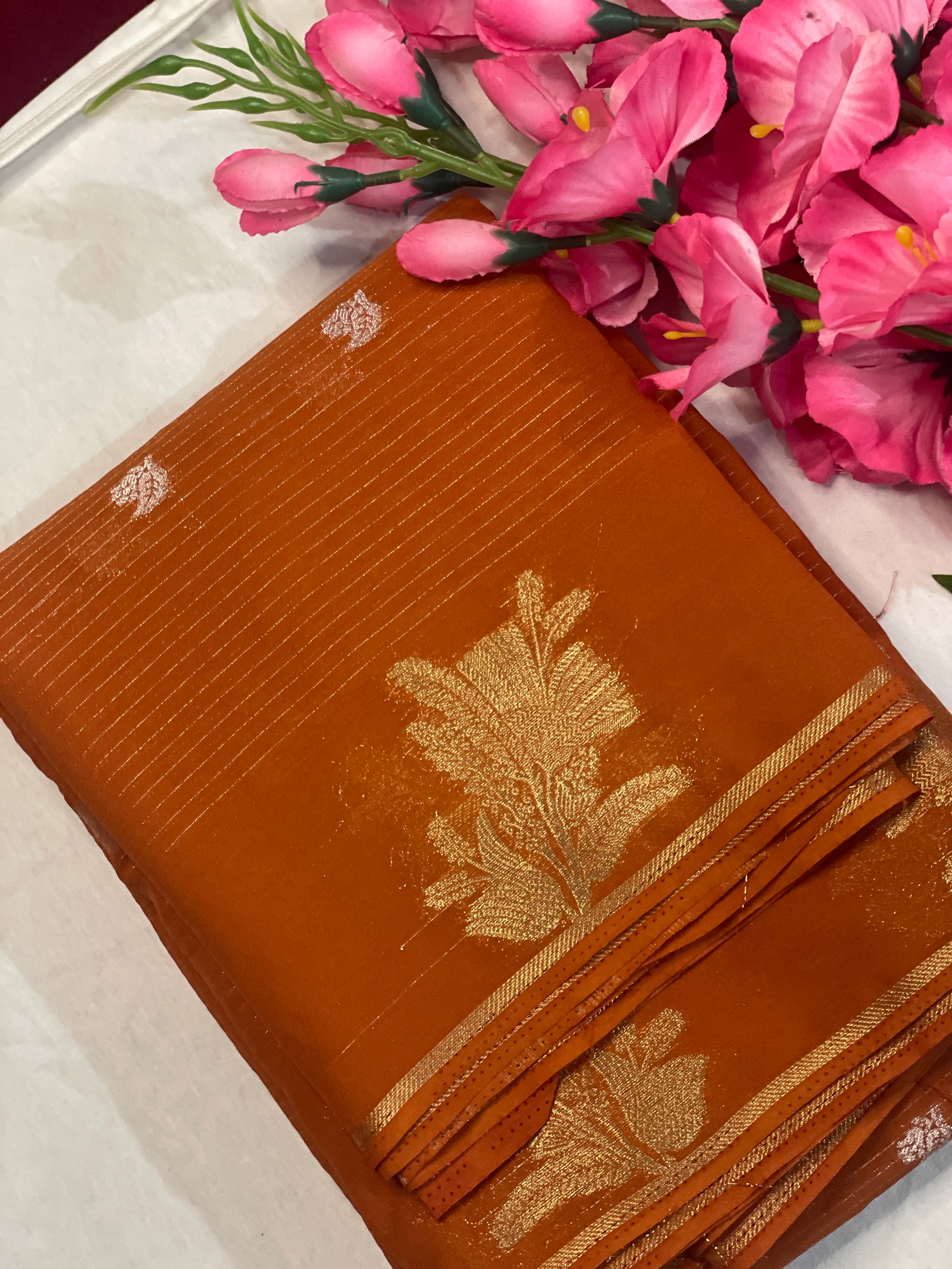 This elegant Brown Georgette saree offers a lightweight and flowy drape, enhancing graceful movement and comfort throughout the day. Its smooth texture and subtle sheen make it ideal for both casual wear and formal occasions. The fabric’s breathable quality ensures ease during extended use, while its rich brown hue adds a timeless, sophisticated charm to your collection. Perfectly suited for those seeking understated elegance with professional finesse.