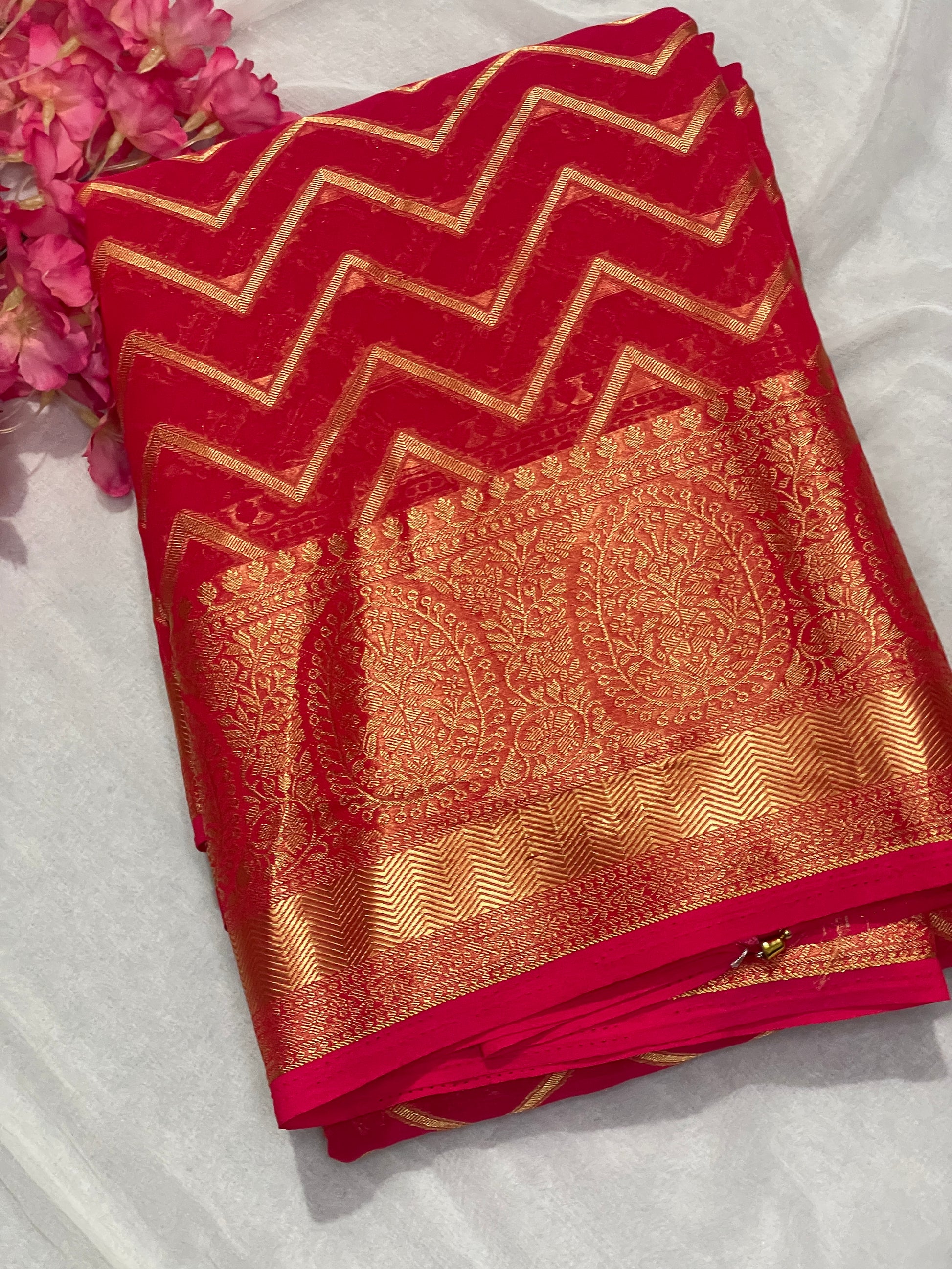 Experience elegance with this Chiffon Fancy Saree featuring a richly detailed pallu. Crafted from lightweight chiffon, it drapes gracefully, offering both comfort and style. The intricate pallu design adds a touch of sophistication, making it perfect for special occasions and festive events. This saree combines delicate fabric with artistic embellishments to enhance your traditional wardrobe effortlessly.