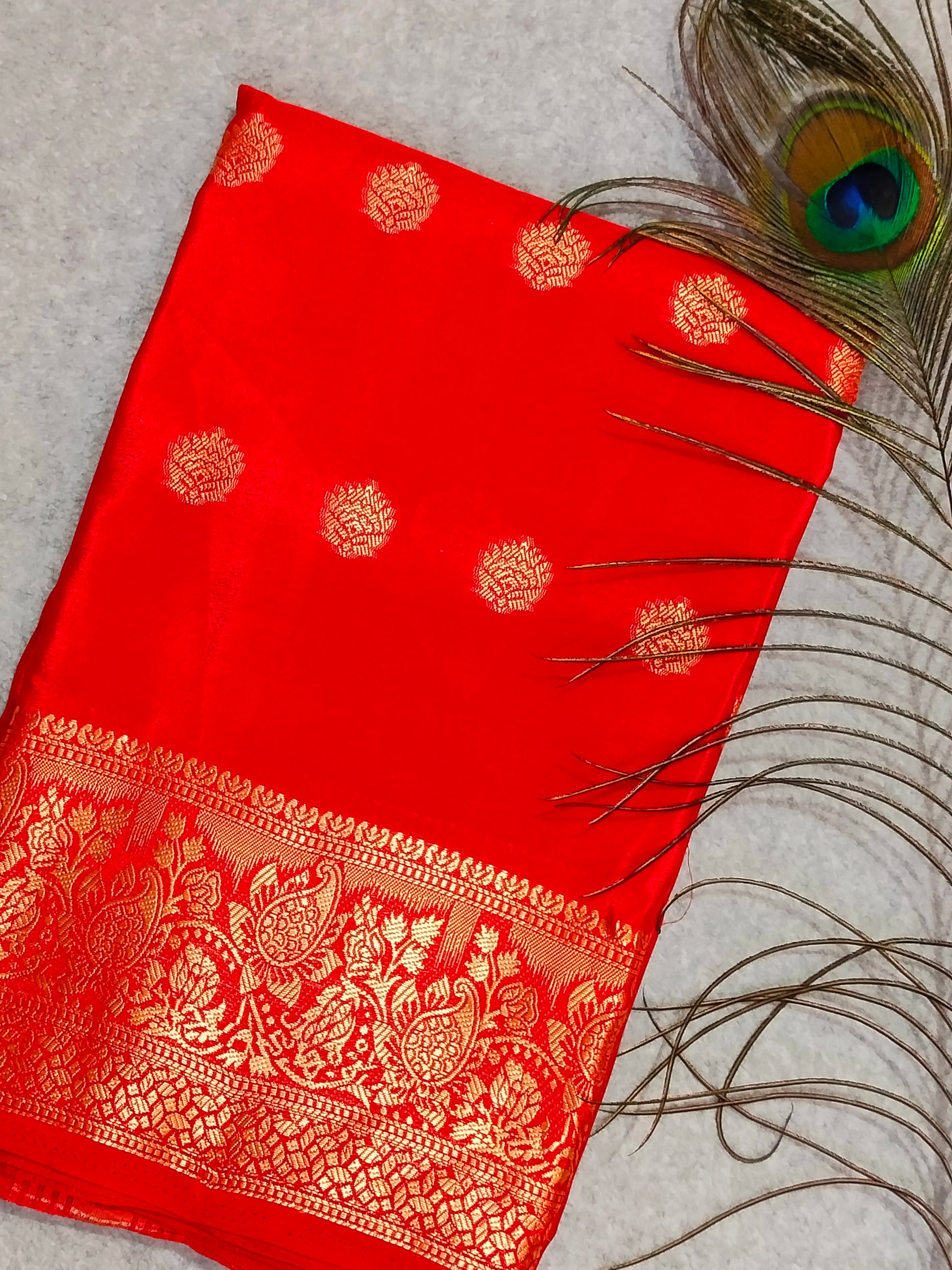 Experience elegance with this red crape viscose silk saree featuring delicate flower butta motifs throughout. The breathable viscose silk fabric offers a smooth drape and subtle sheen, enhancing comfort and style. Ideal for festive occasions, this saree blends traditional charm with modern grace, making it a timeless addition to your wardrobe.