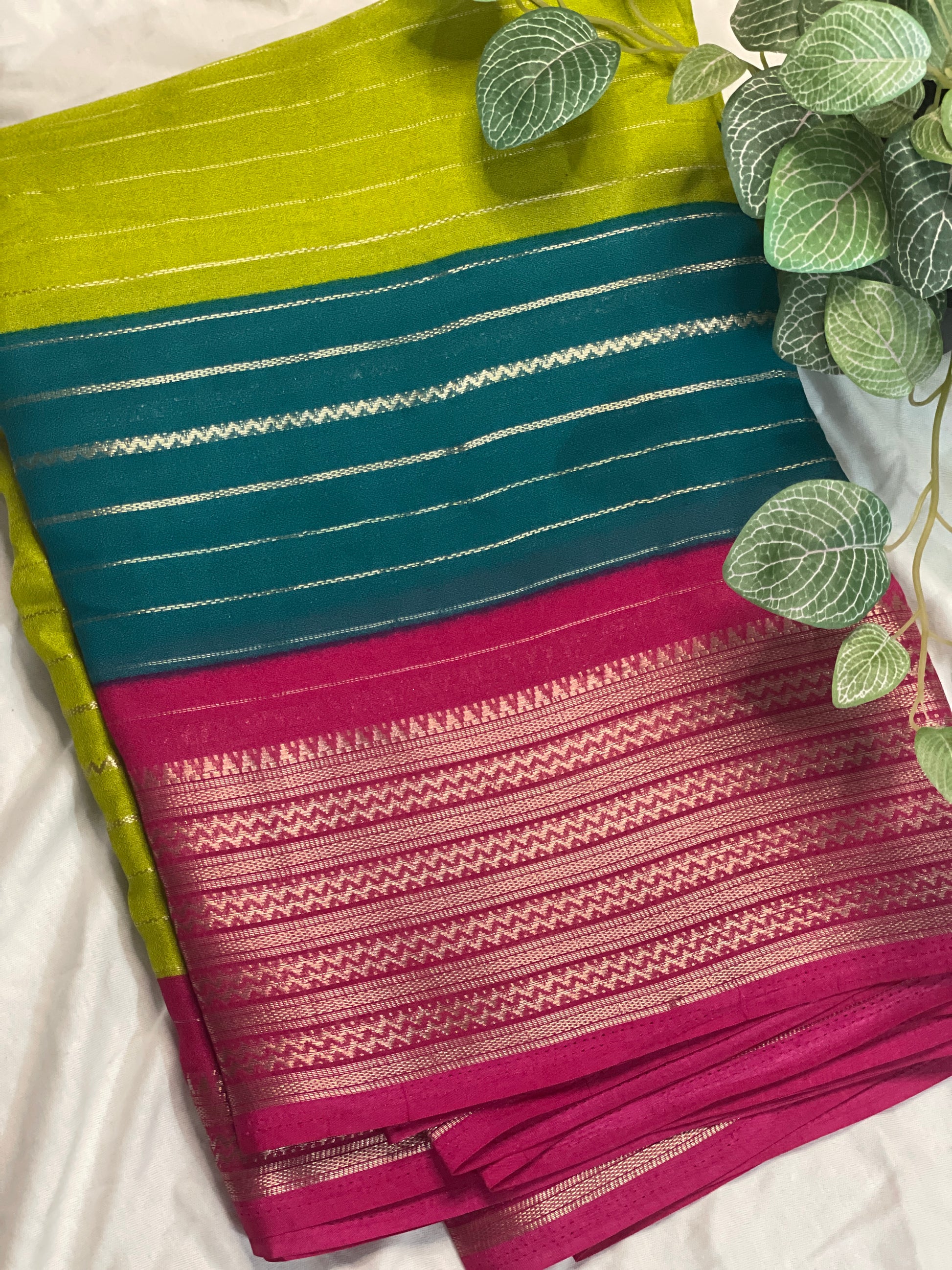 Elevate your traditional wardrobe with the Georget 3D Saree in Semi Mysore Silk. Crafted from premium semi Mysore silk, this saree offers a smooth texture and subtle sheen, ensuring comfort and elegance for all-day wear. The intricate 3D design adds depth and a contemporary touch to classic draping, making it suitable for festive occasions and formal events alike. Its lightweight fabric allows easy handling while maintaining a graceful fall, enhancing your silhouette with every wear. A perfect blend of tradition and modernity for the discerning saree connoisseur.