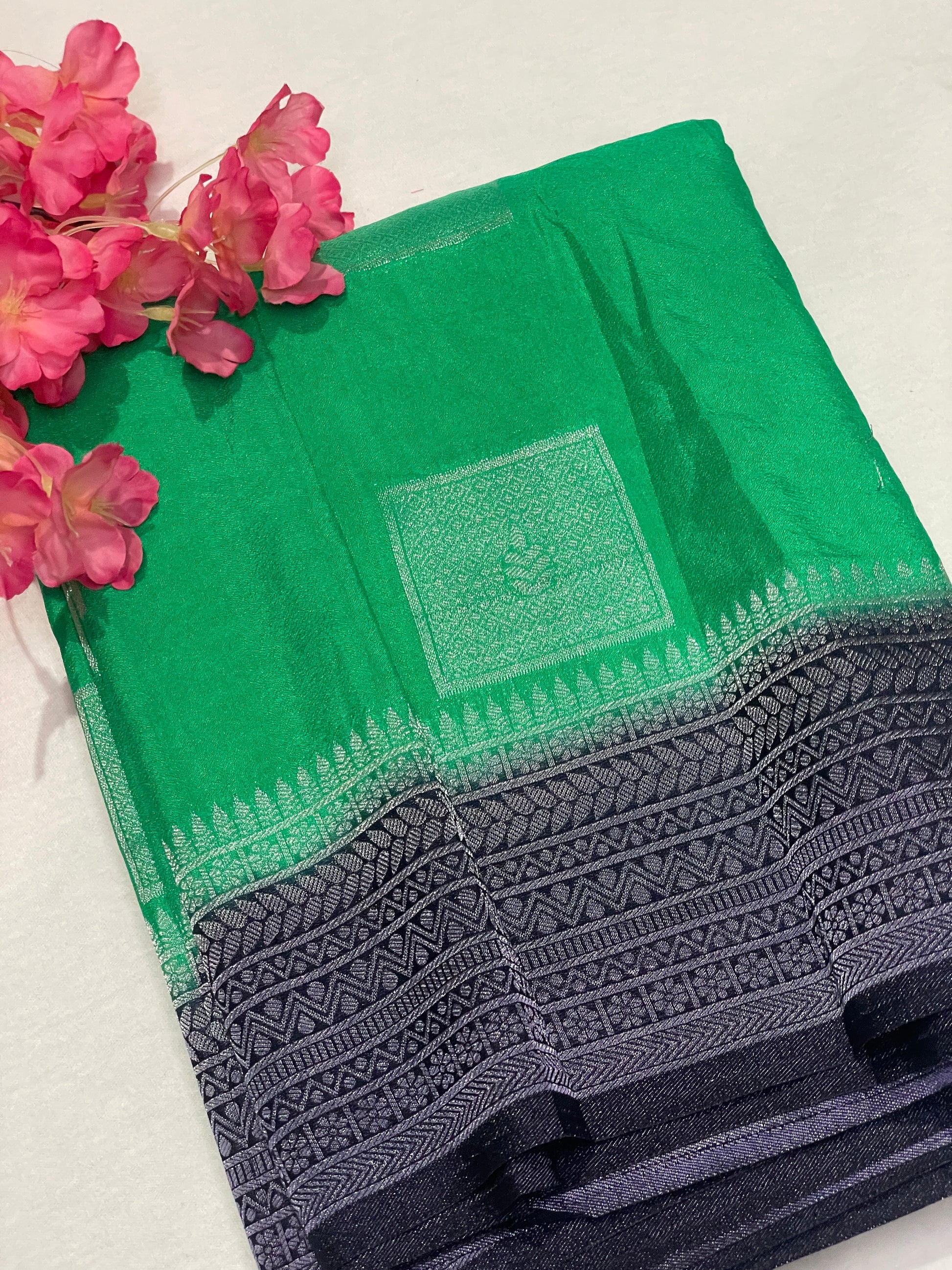 This Georget Soft Geometric pattern saree offers a refined blend of elegance and contemporary design. Crafted from soft georgette fabric, it ensures a lightweight and comfortable drape, ideal for extended wear. The structured geometric patterns add a modern touch, making it suitable for both formal occasions and stylish everyday wear. Perfectly balancing sophistication and ease, this saree is a versatile addition to any wardrobe.