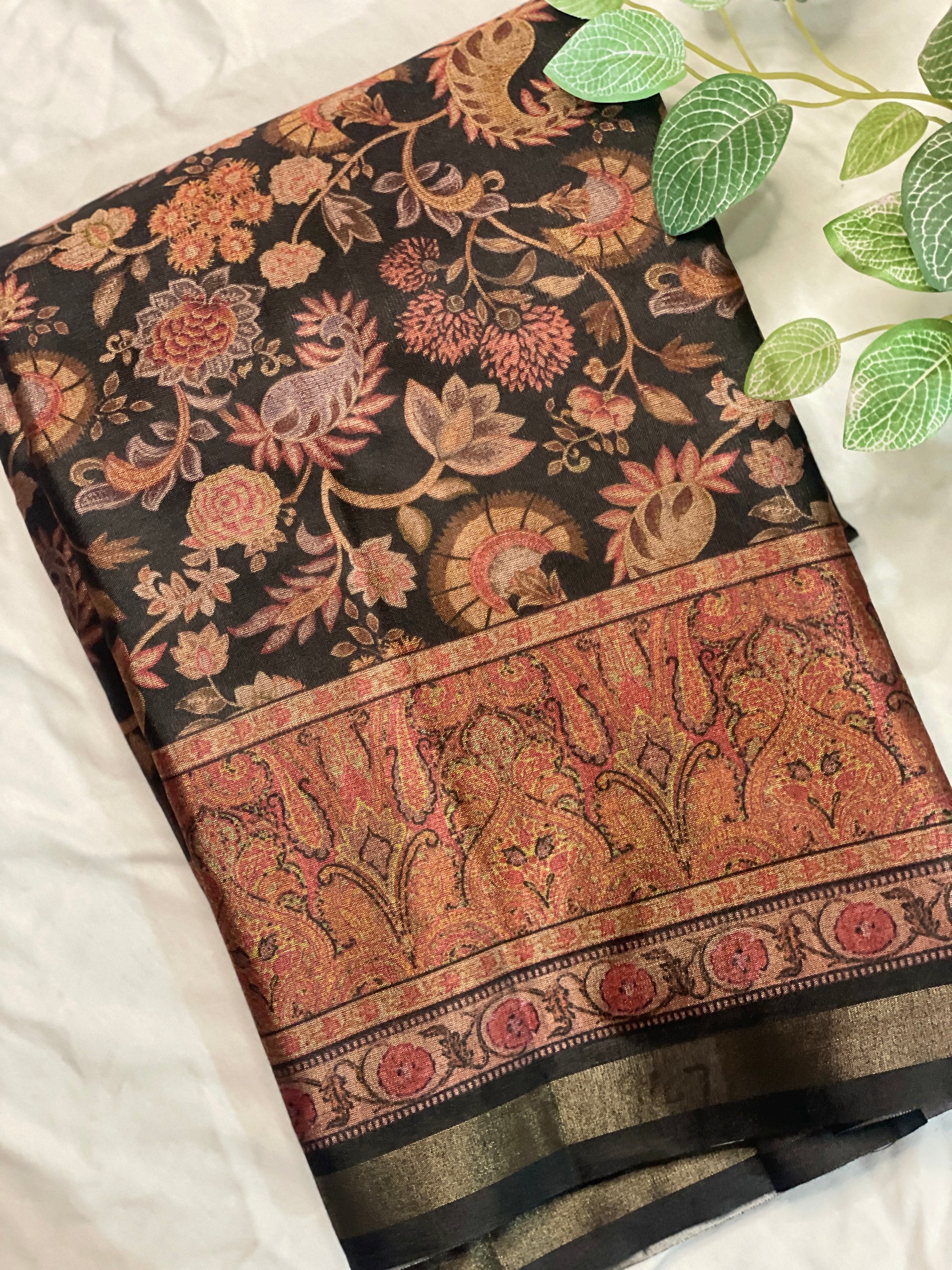 Black Floral Kashmiri Semi Silk Saree