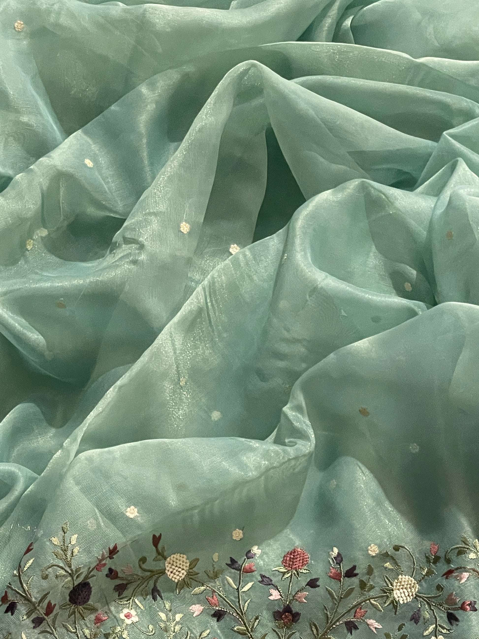 Lenin Tissue Lite weight Embroidery Saree