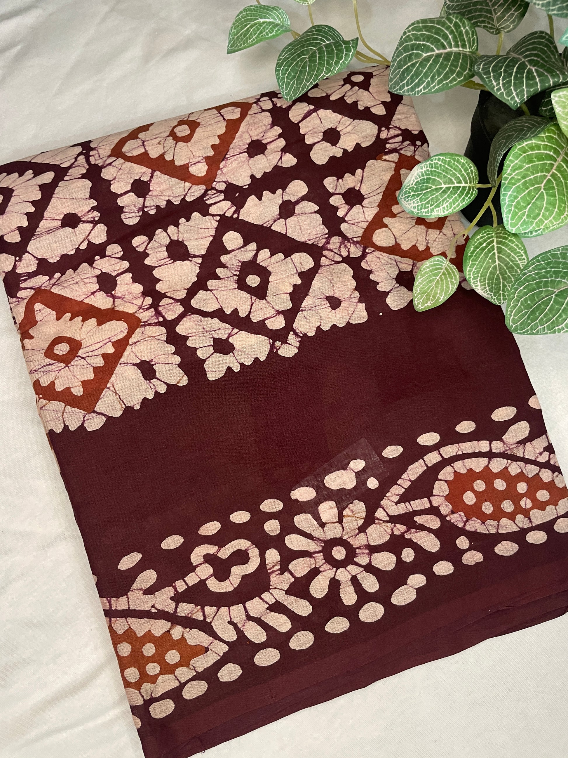 Elevate your ethnic wardrobe with the Mul Cotton Brown Saree, crafted from breathable mul cotton fabric for all-day comfort. Its rich brown hue blends traditional charm with versatile style, making it ideal for casual outings or festive occasions. The lightweight texture ensures ease of draping and graceful movement, while the natural fabric keeps you cool even in warm weather. This saree seamlessly combines timeless elegance with practical wearability.