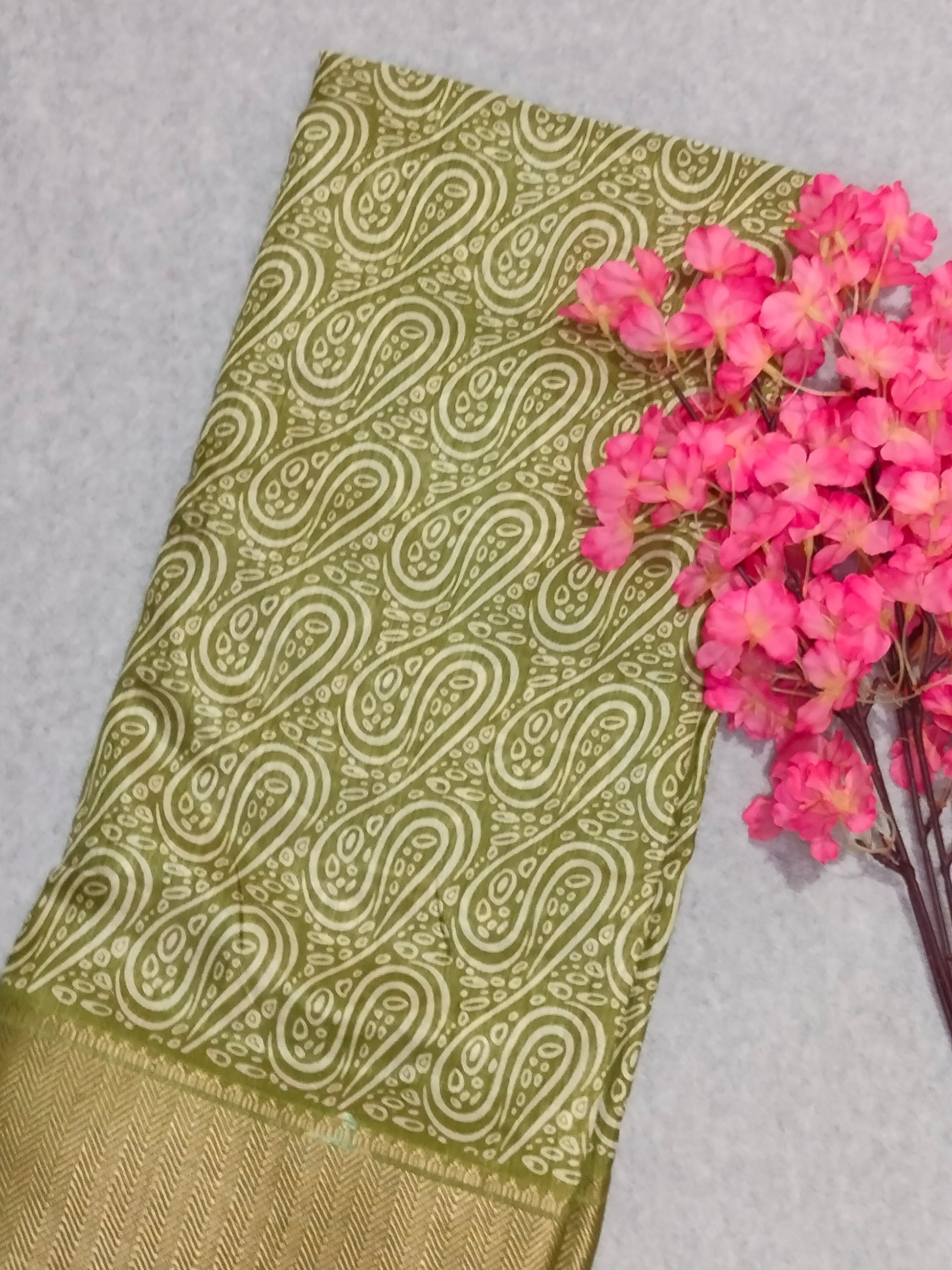 Experience the elegance of the Semi Dola Silk Saree in a rich green hue. This saree combines traditional craftsmanship with a smooth, semi-dola silk weave, offering both a luxurious texture and graceful drape. Ideal for formal occasions and festive celebrations, its vibrant green shade enhances your presence while the breathable fabric ensures comfort throughout the day. A timeless addition to your wardrobe that reflects refined taste and cultural heritage.