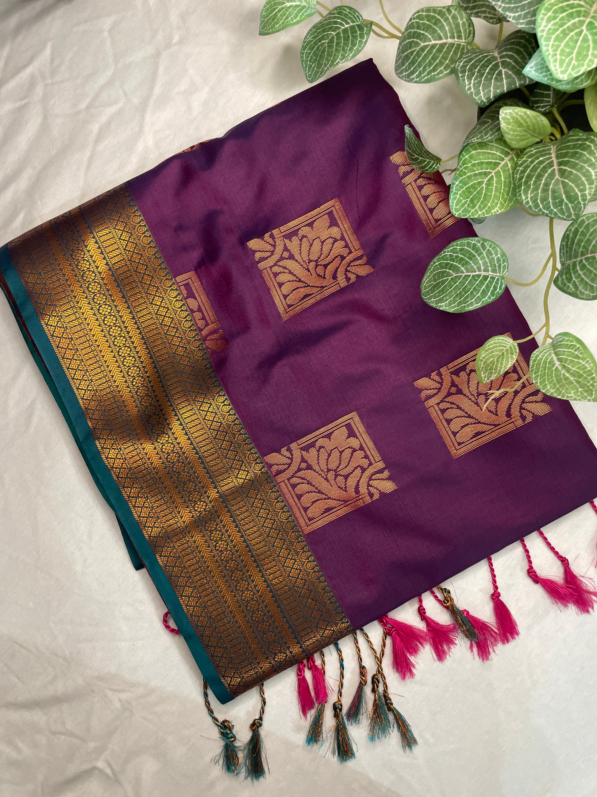 Elevate your ethnic wardrobe with this Soft Silk Saree featuring a striking contrast blue pallu. Crafted from premium soft silk, it offers a smooth texture and graceful drape, ensuring comfort and elegance. The vibrant blue pallu adds a sophisticated touch, perfect for festive occasions or formal events. This saree combines timeless tradition with refined style, making it a valuable addition for those who appreciate quality and classic design.
